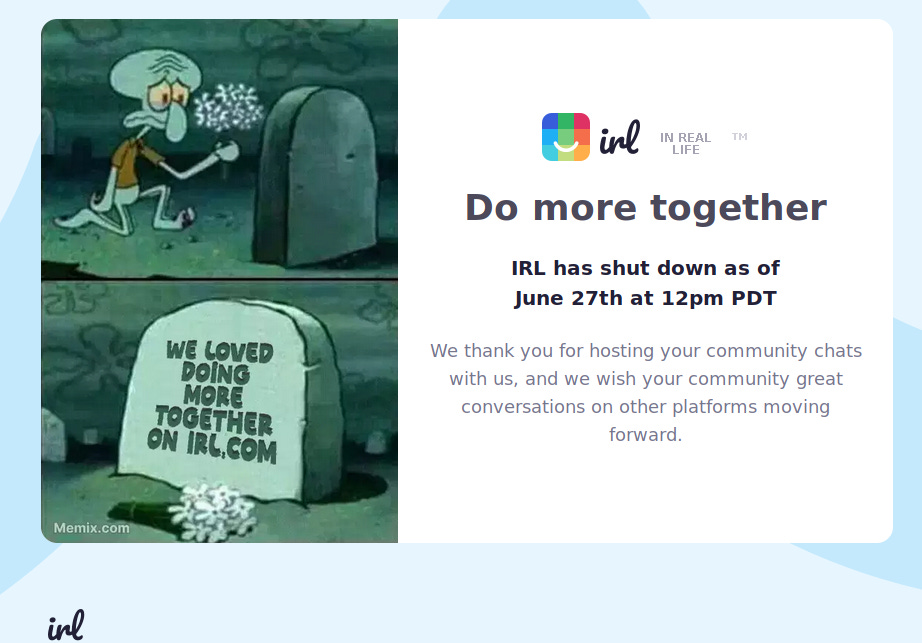 I recently came across an article by SimilarWeb titled, Social app IRL shut down in June after an internal investigation found its audience was 95% bots. If you've never heard of IRL (I hadn't until I read the article), it's essentially a chat application with public and private channels, similar to a D*scord or Telegram. What makes IRL different from these other chat applications is that the vast majority of their 20 million active users were bots! Quite ironic considering the acronym IRL stands for "In Real Life".